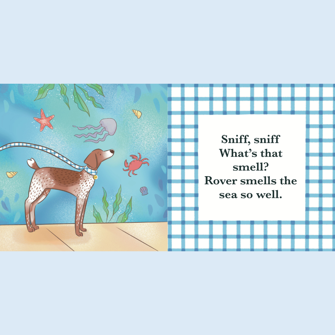 Rover can’t wait to sniff, explore, and discover his favorite beach town — Stone Harbor, New Jersey! From sandy paws to fluttering birds, this playful sensory journey invites little ones to see, hear, and feel the magic of the shore🦀